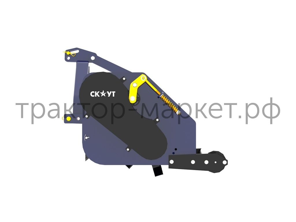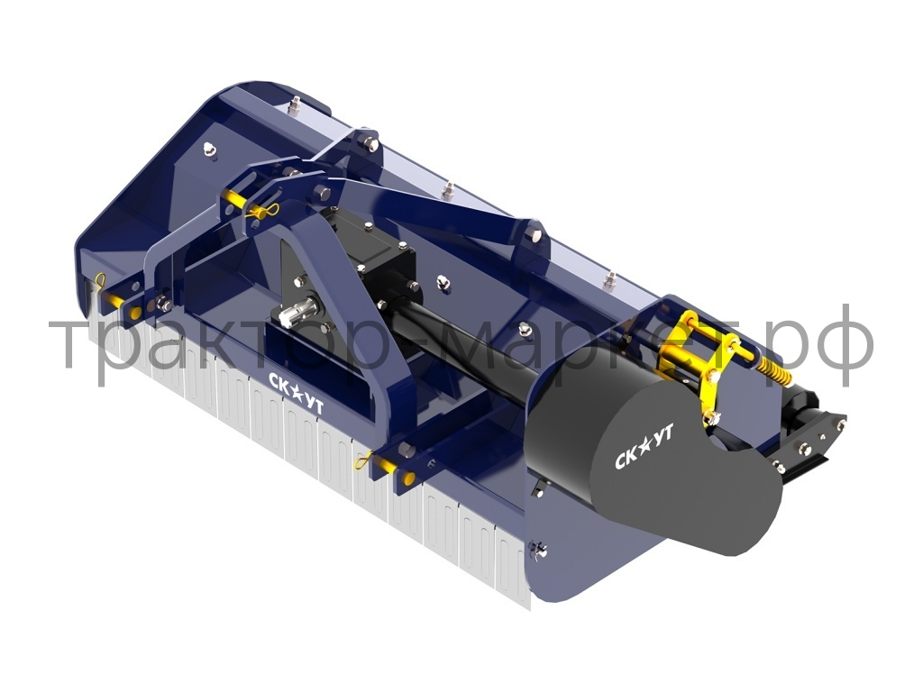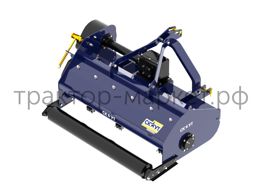 Навесной мульчер оборудован амортизатором, который подстраивается под рельеф почвы. Режущие элементы молотковой формы, с усиленными краями. Для безопасности оператора установлена металлическая пластина и каток. Подключается к тракторам мощностью от 18 до 40 л. с. Агрегатируется на трёхточечное крепление и вал отбора мощности 540 об/мин.