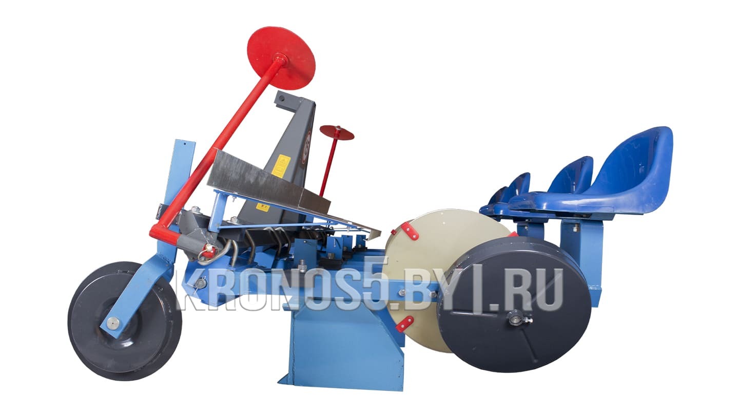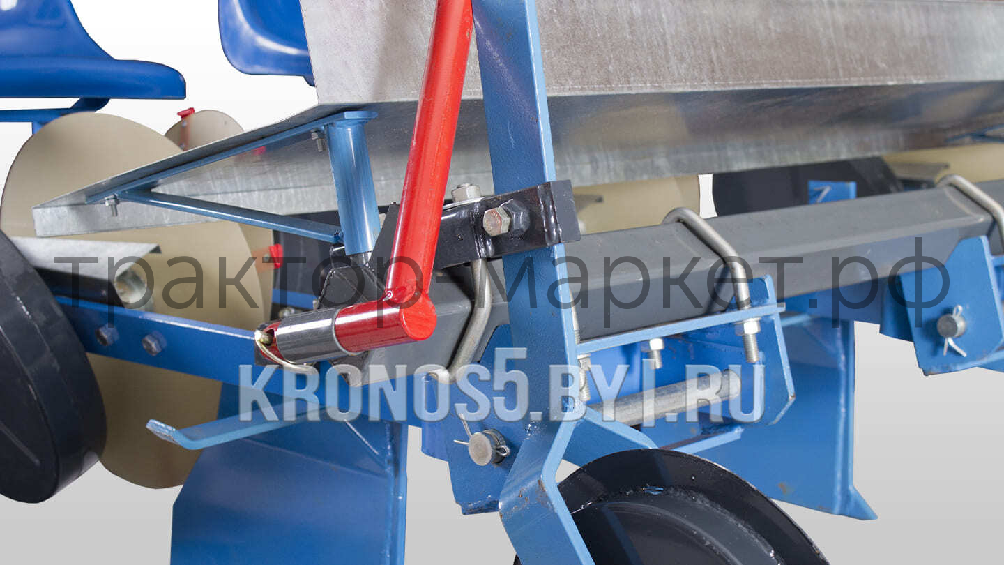 Бороздоделы создают борозду необходимой глубины. Оператор выкладывает рассаду в специальные держатели, расположенные на посадочных дисках. Рассада опускается в нужном положении, а металлические диски заделывают ее в почву. Конструкторы продумали все элементы для того, чтобы сделать работу максимально эффективной и комфортной. Так, для удобства эксплуатации у агрегата предусмотрен стол для ящиков с рассадой.Настройки
